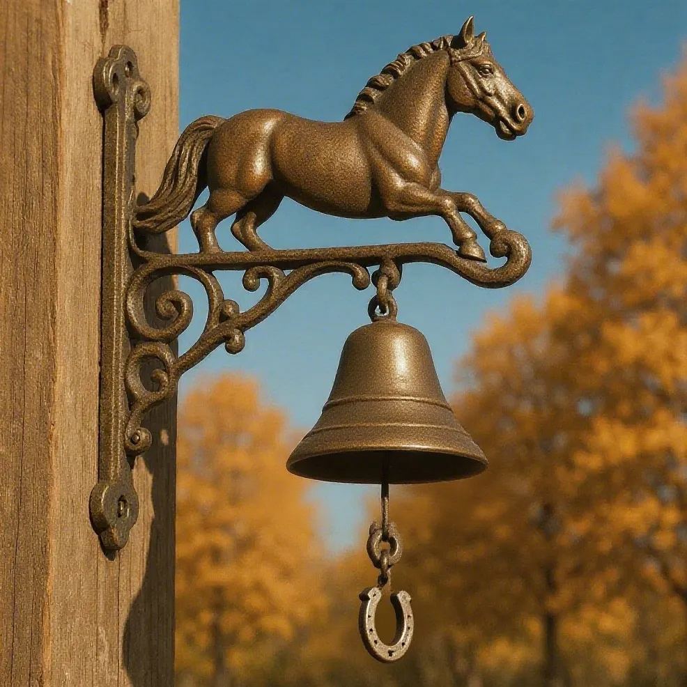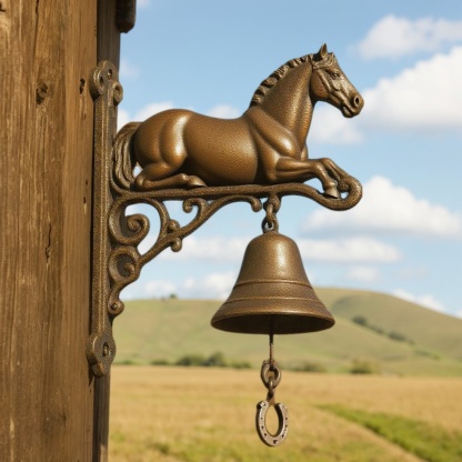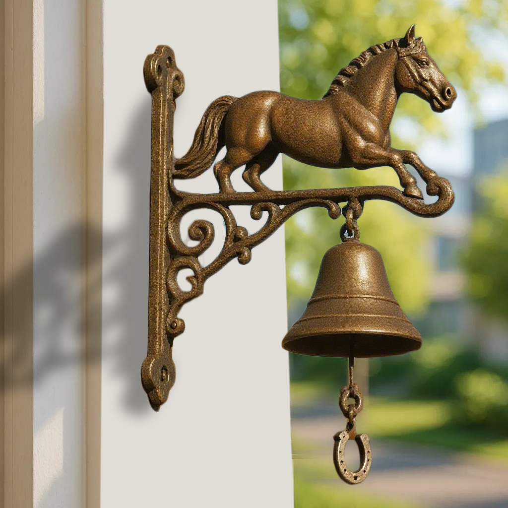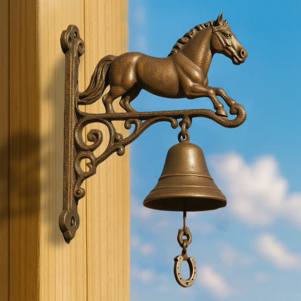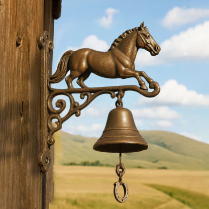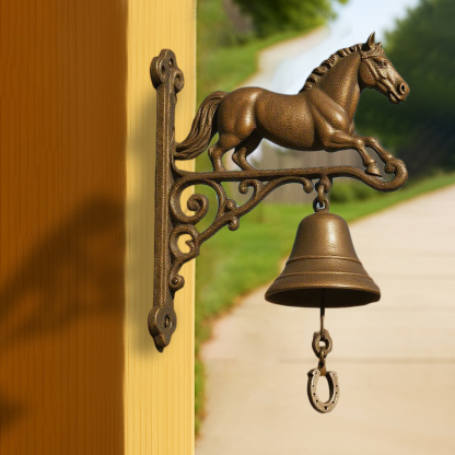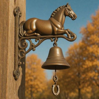 Bring a touch of country charm and equestrian elegance to your home with our Equestrian Cast Iron Horse Bell – Rustic Farmhouse Door Chime.