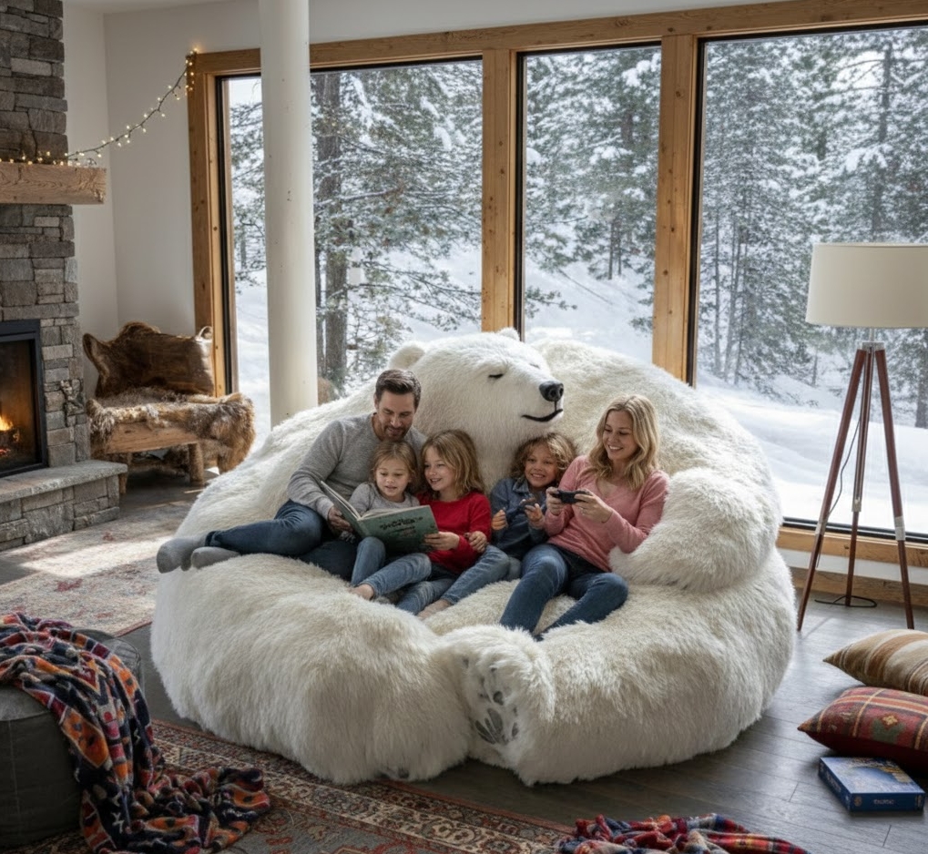 Giant Polar Bear Plush Lounger Bean Bag Sofa – Ultra-Soft Oversized Cuddle Floor Chair for Adults & Kids